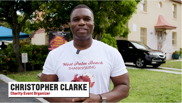 November 23, 2024: Clarke, organizer of the fourth annual Thanksgiving Turkey Giveaway, was featured on local news by NBC affiliate WPTV Channel 5. Watch Video
