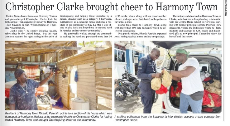 The Western Mirror, Jamaica: “Christopher Clarke brought cheer to Harmony Town”